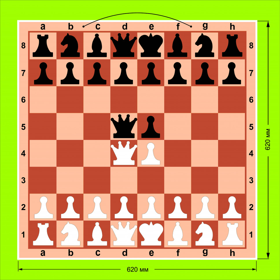 Размер доски - 62 х 62 см, клетки – 7 х 7 см.