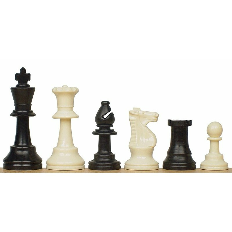 Король - 7.8 см, диаметр основания 3 см; Ферзь - 6.2 см, 3.0 см; Ладья - 4.0 см, 2.5 см; Слон - 5.3 см, 2.5 см; Конь - 4.7 см, 2.7 см; Пешка - 3.6 см, 2.2 см.